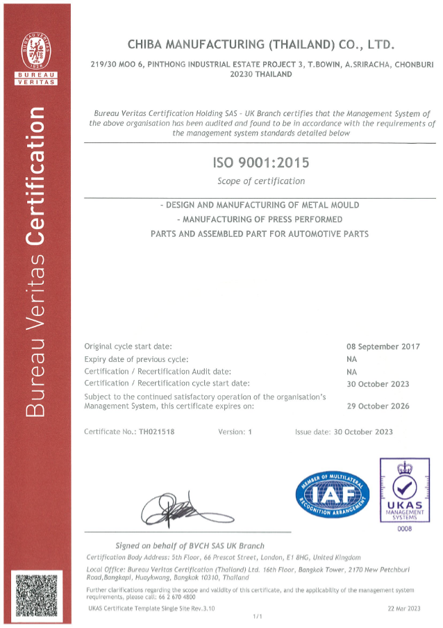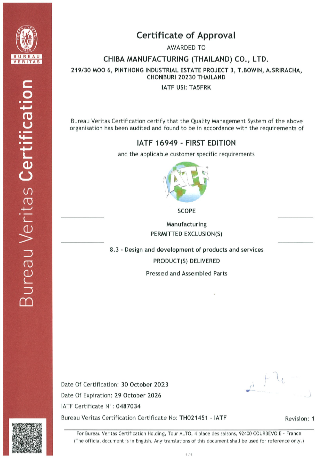 We improve our products quality and create the value that will be satisfied our customer requirements. And we contribute to the society through our customer by providing our products. Improve quality management system continuously by carrying out the cycle of "Plan" "Do" "Check" "Action". Improve the productivity and the quality to increase our customer's satisfaction. Carry out the analysis and the improvement of every problem that our company has. Promote our internal communication, and share our knowledge, and then develop human resource.