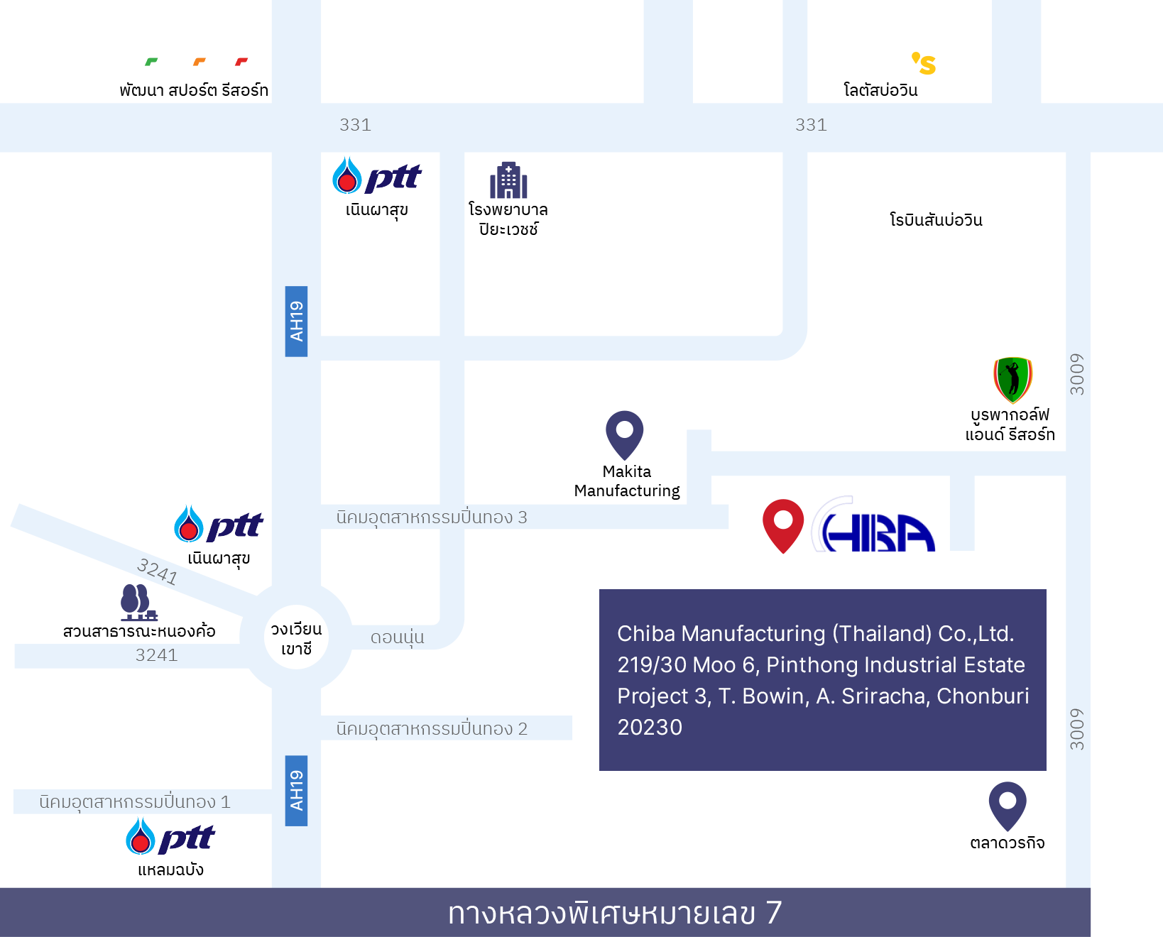 Address : 219/30 Moo 6, Pinthong Industrial Estate Project 3, T. Bowin, A. Sriracha, Chonburi 20230