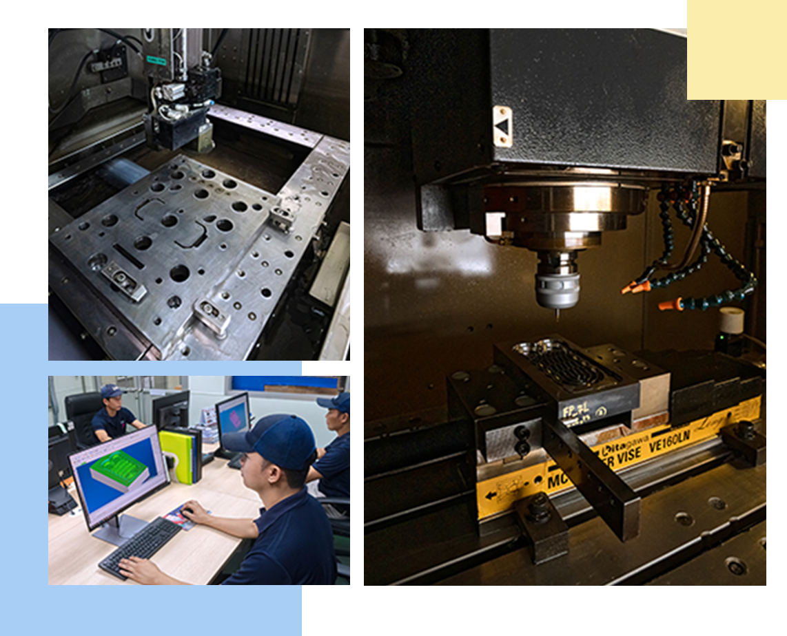Our process can design, making dies, die design, stainless press, aluminum press, press die until mass production by complete production system from single product, progressive product and secondary process.
